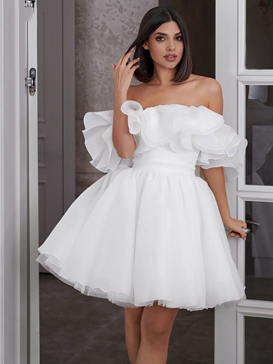 Off-Shoulder Ruffled Organza Short Wedding Dress MSW074