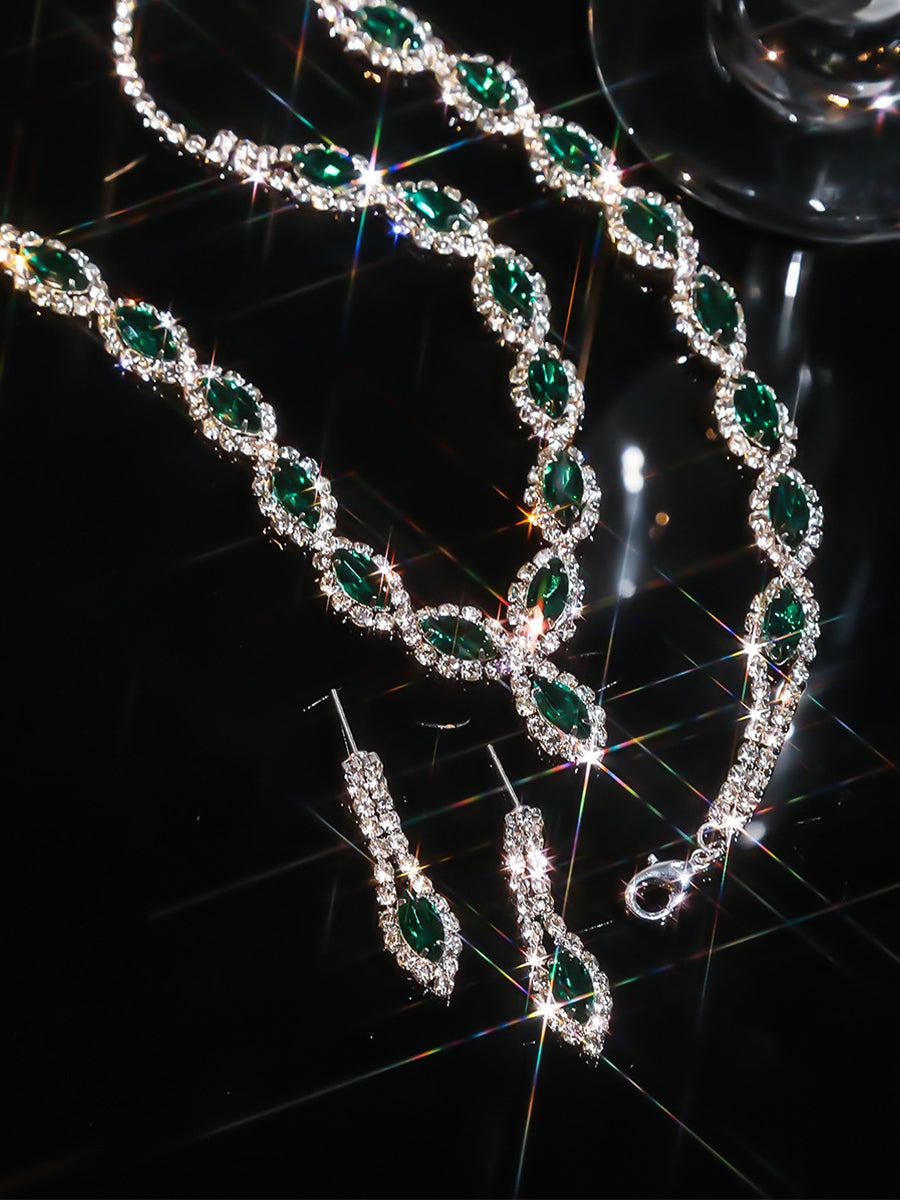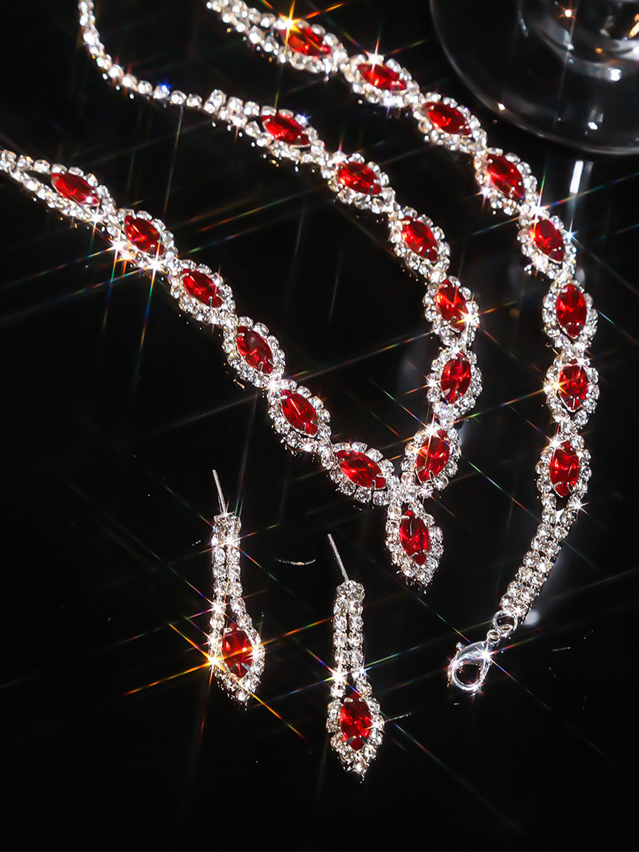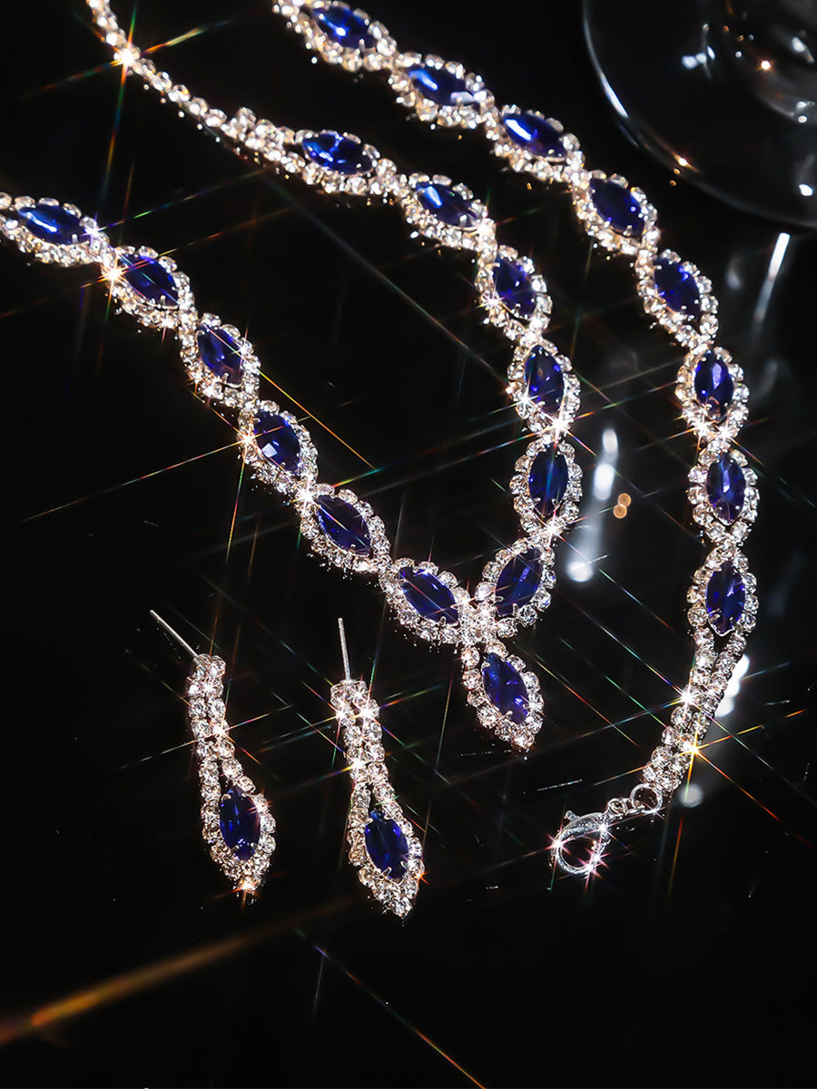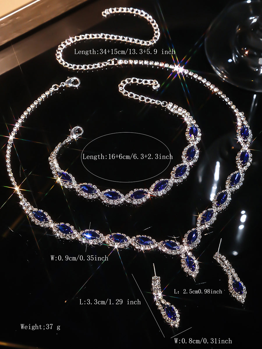 Sparkling Rhinestone Necklace Earrings Bracelet Set MSE00128