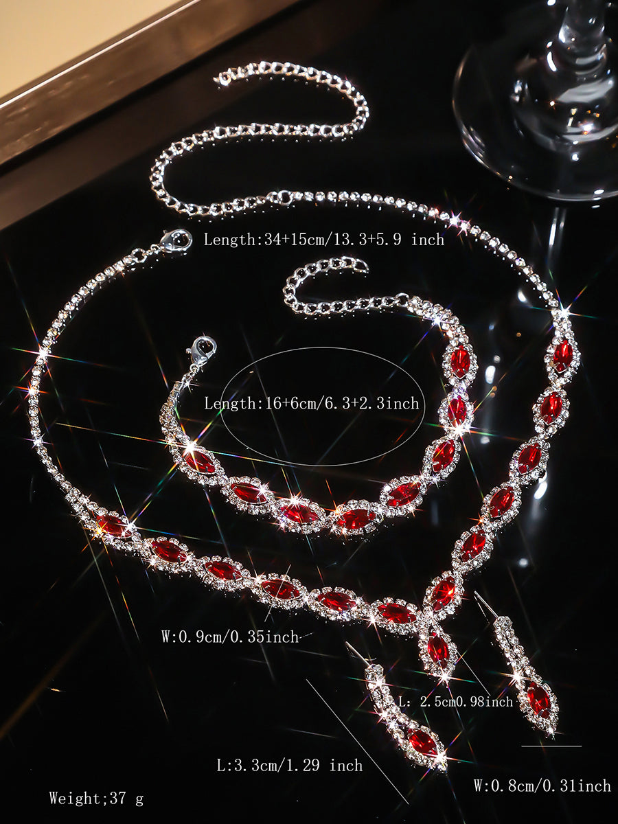 This stunning Sparkling Rhinestone Necklace Earrings Bracelet Set will add a glamorous touch to any ensemble with its sparkling rhinestones and silver-tone accents. An ideal gift for special occasions.