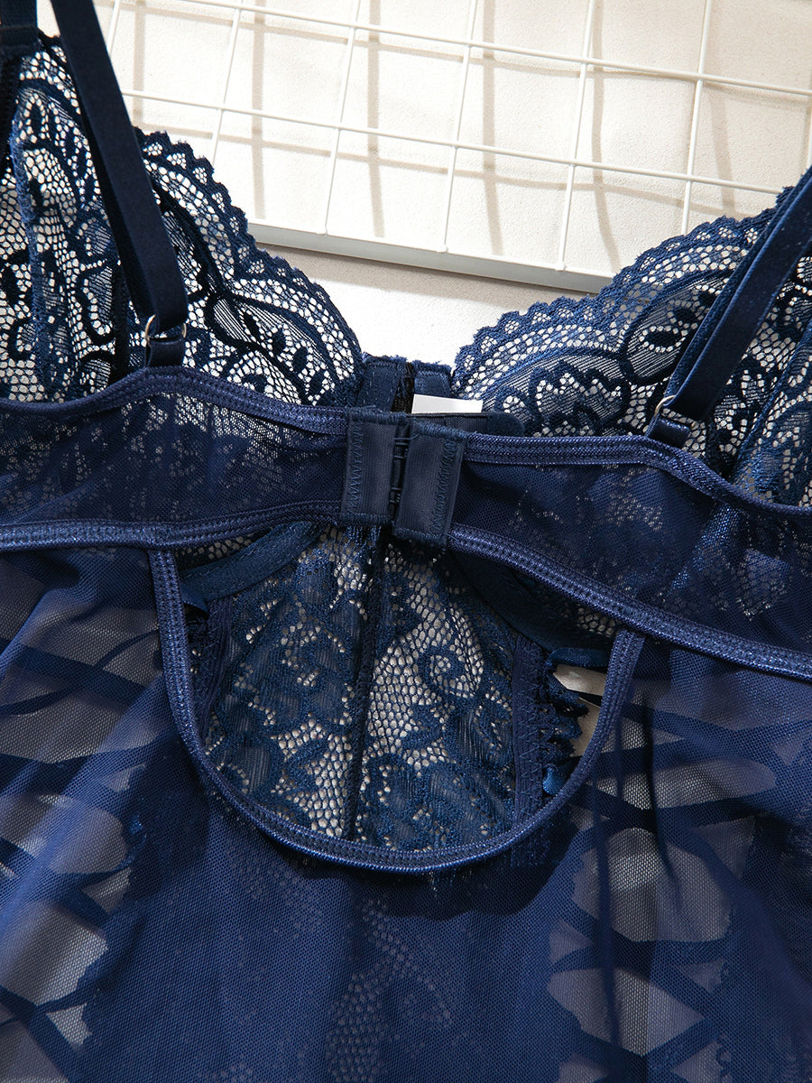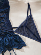 Elevate your intimate wardrobe with this stunning blue two-piece set, where delicate lace embroidery meets modern allure. The intricate detailing creates a captivating silhouette that's both elegant and undeniably flirty. Crafted for confidence, this set combines comfort with that perfect touch of sass—ideal for making a memorable impression. Whether you're treating yourself or surprising someone special, this playful ensemble delivers sophistication with a wink.