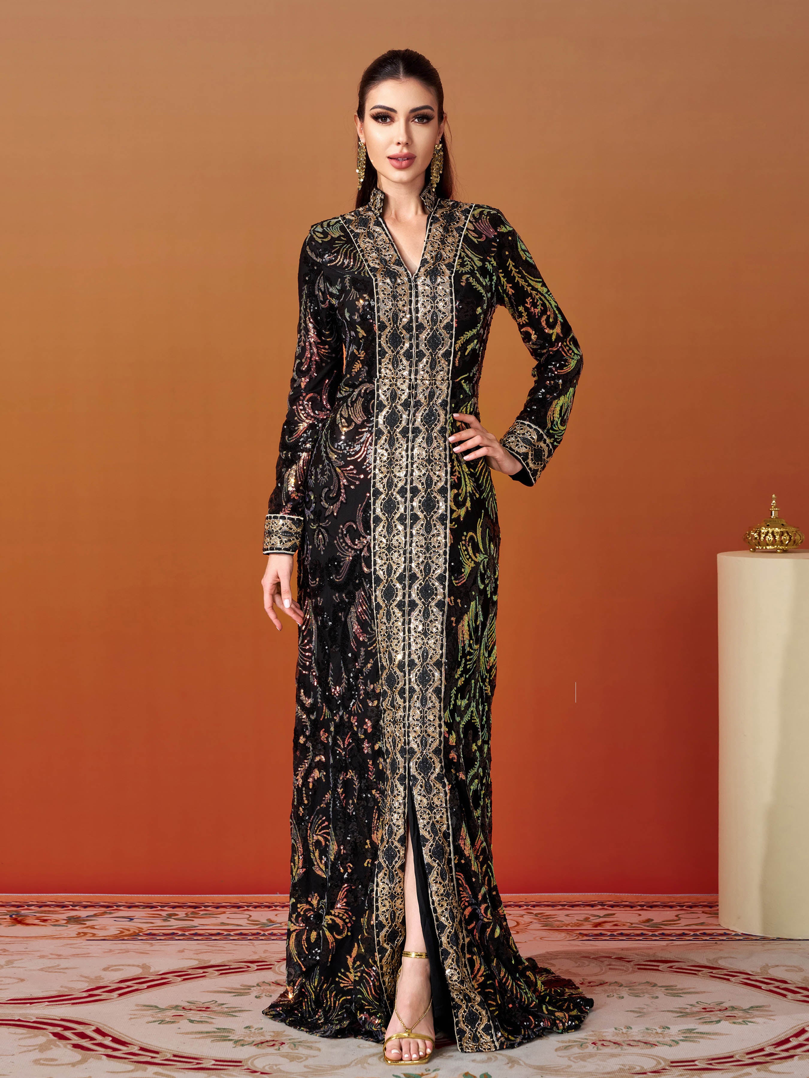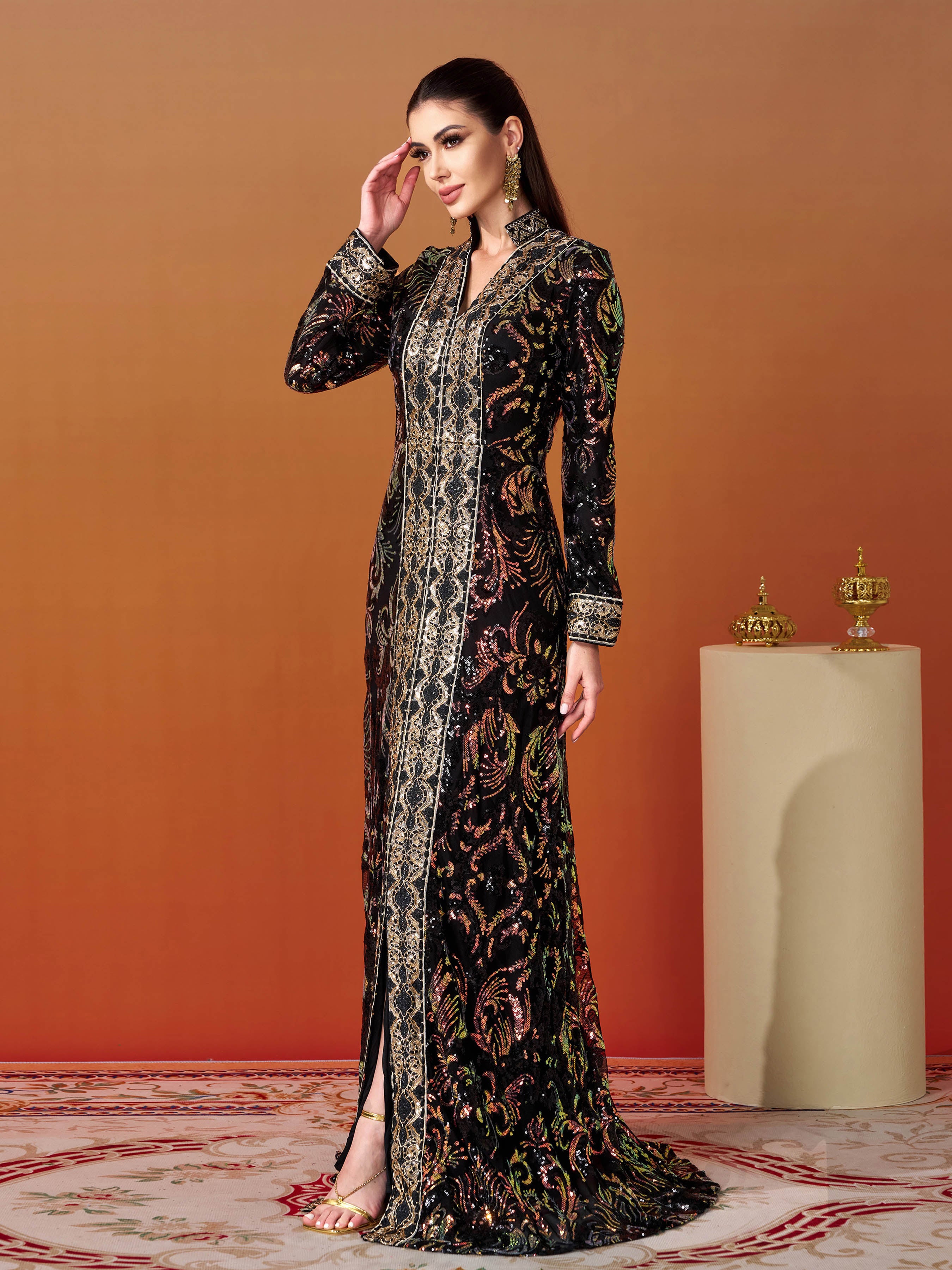 Be the life of the party in our Vintage Sequin Split Black Maxi Dress! This stunning dress features gorgeous sequins and a sexy split, perfect for showing off your fabulous style. Get ready to make a statement and turn heads everywhere you go. Shine bright in this one-of-a-kind dress!