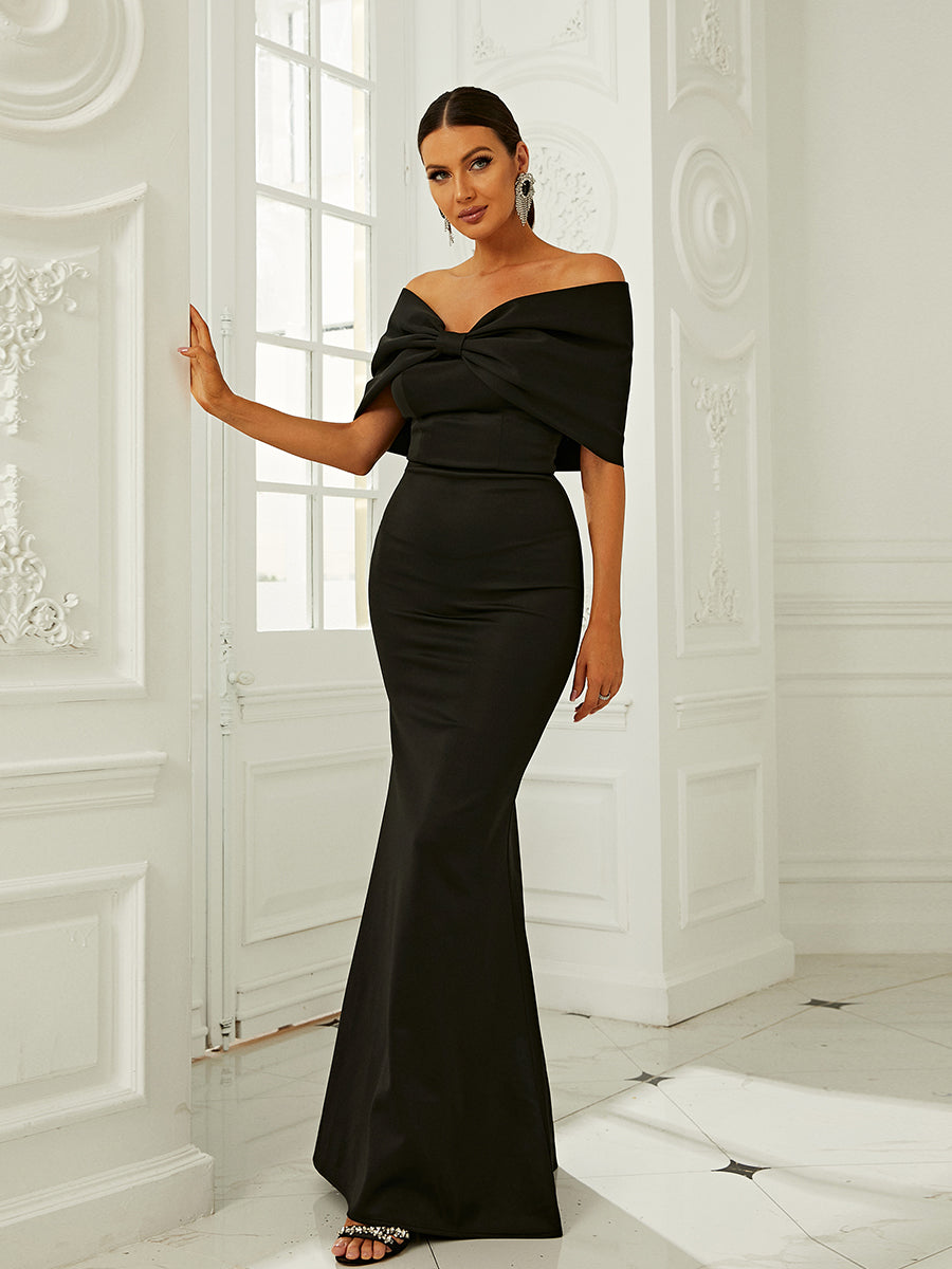 Puncho Back Puff Sleeve Sequin Evening Dress XH2266