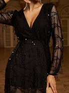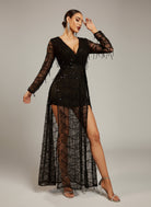 V-neck Wrap Hem Sequin Maxi Dress FT2901