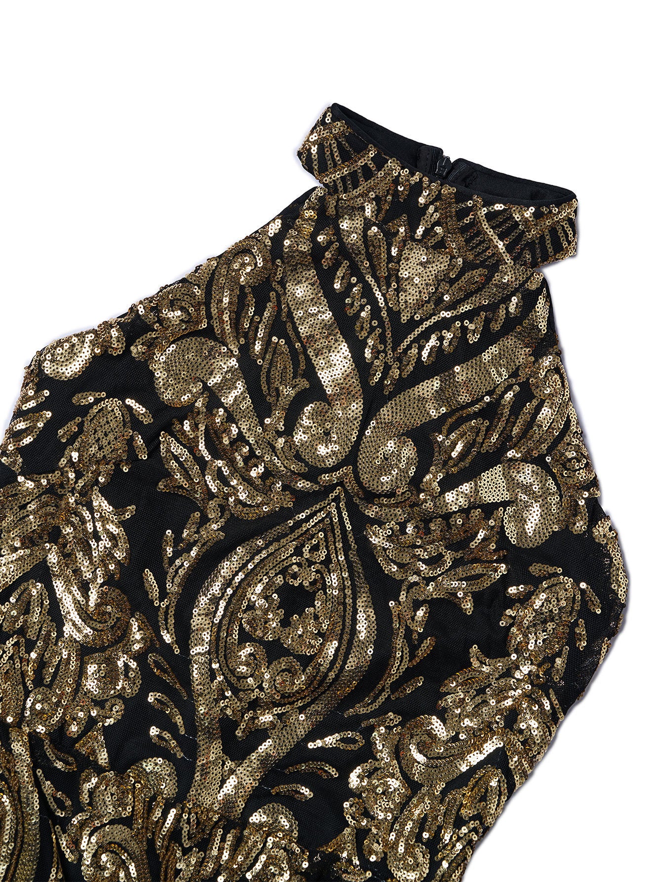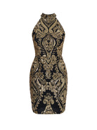 Halterneck Damask Sequin Bodycon Mini Dress FT19757