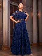 Blue Floral Lace Embroidered Flowy Prom Dress GM01043