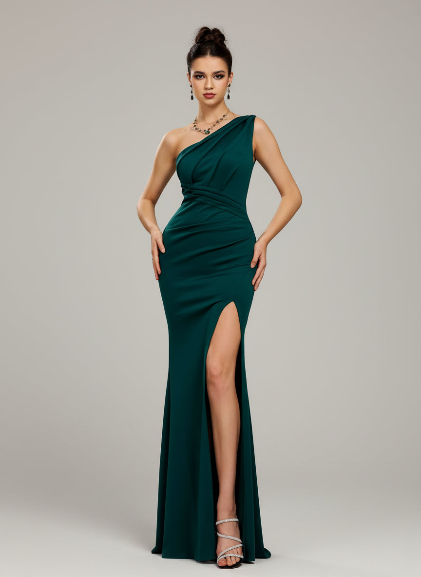 Emerald One-Shoulder Ruched Slit Formal Dress XF251212