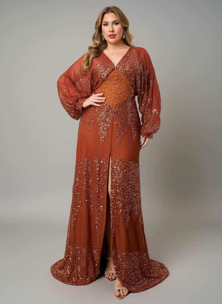 Plus Size V-neck Geometric Sequin Prom Dress MCW0994