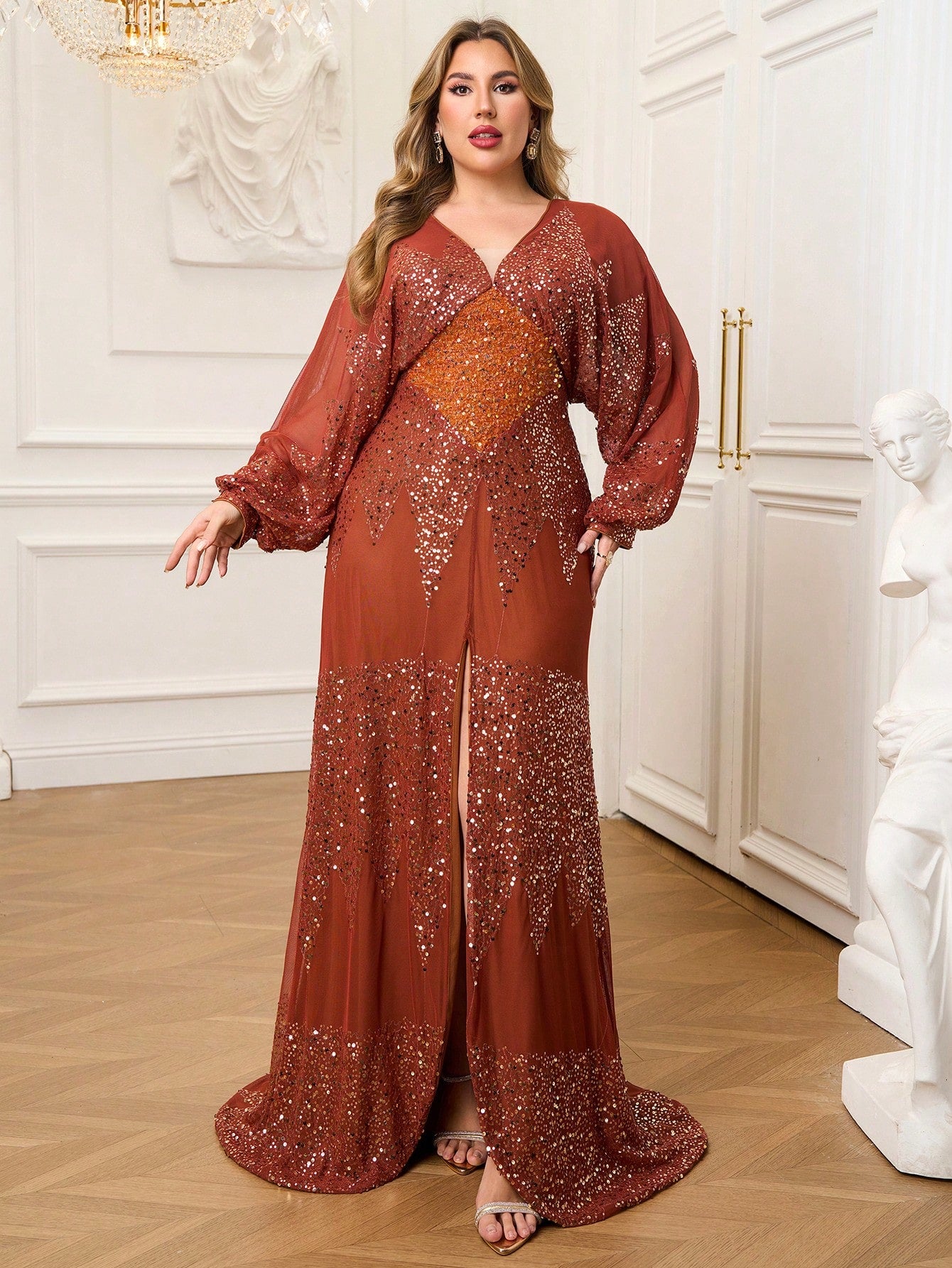 Plus Panel Sleeve Sequin Midi Dress PRH308028