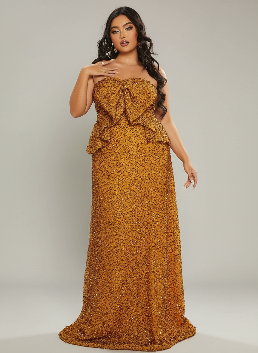 Plus Size Ruffle Bow Sequin Ginger Evening Dress PJM022L