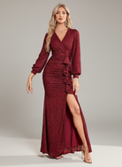 Long Sleeve Glitter Ruffled Prom Dress MCW1038