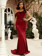 Ruffle Neck Floor Length Red Mermaid Prom Dress M02124