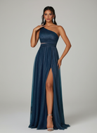 One Shoulder Mesh Pleated Prom Dress MCW1149