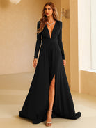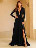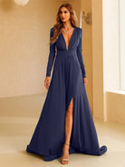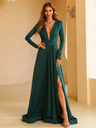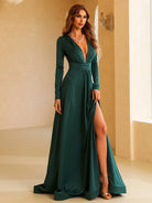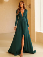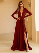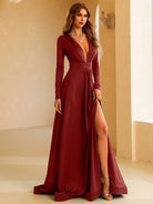 V-neck Long Sleeve Split Maxi Dress XH1221