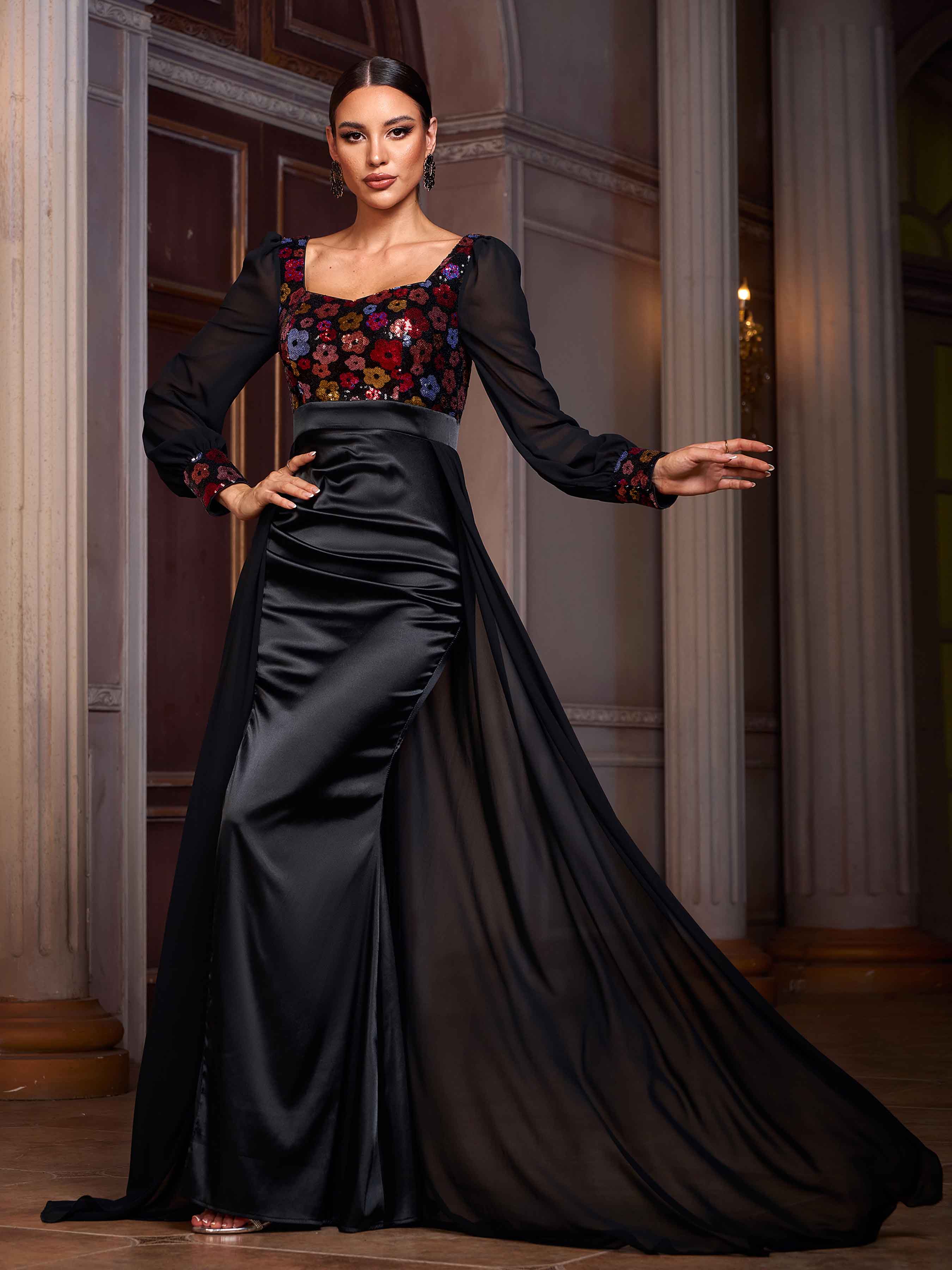 Ballon Sleeve Floral Sequin Mermaid Formal Dress GM00647