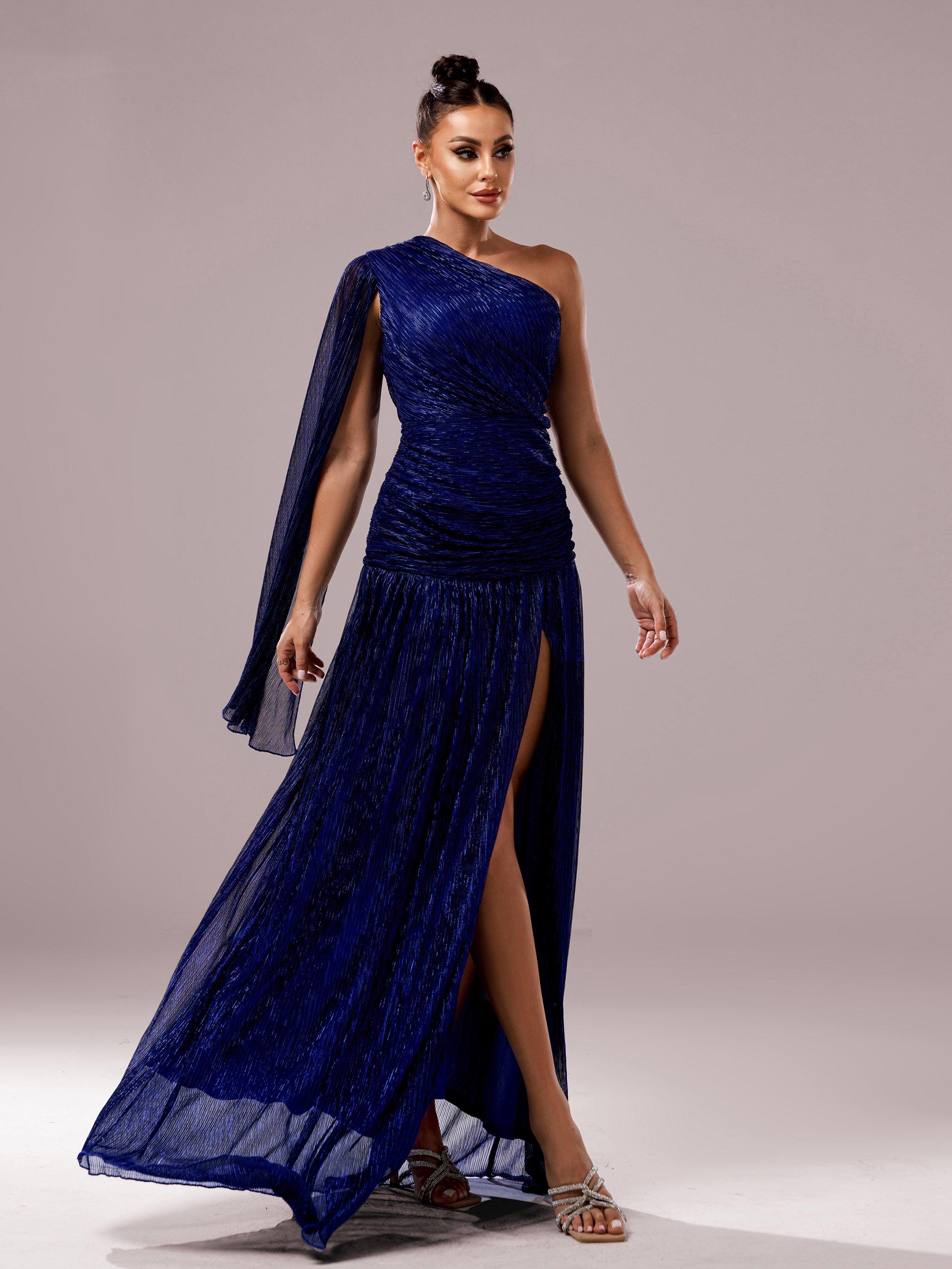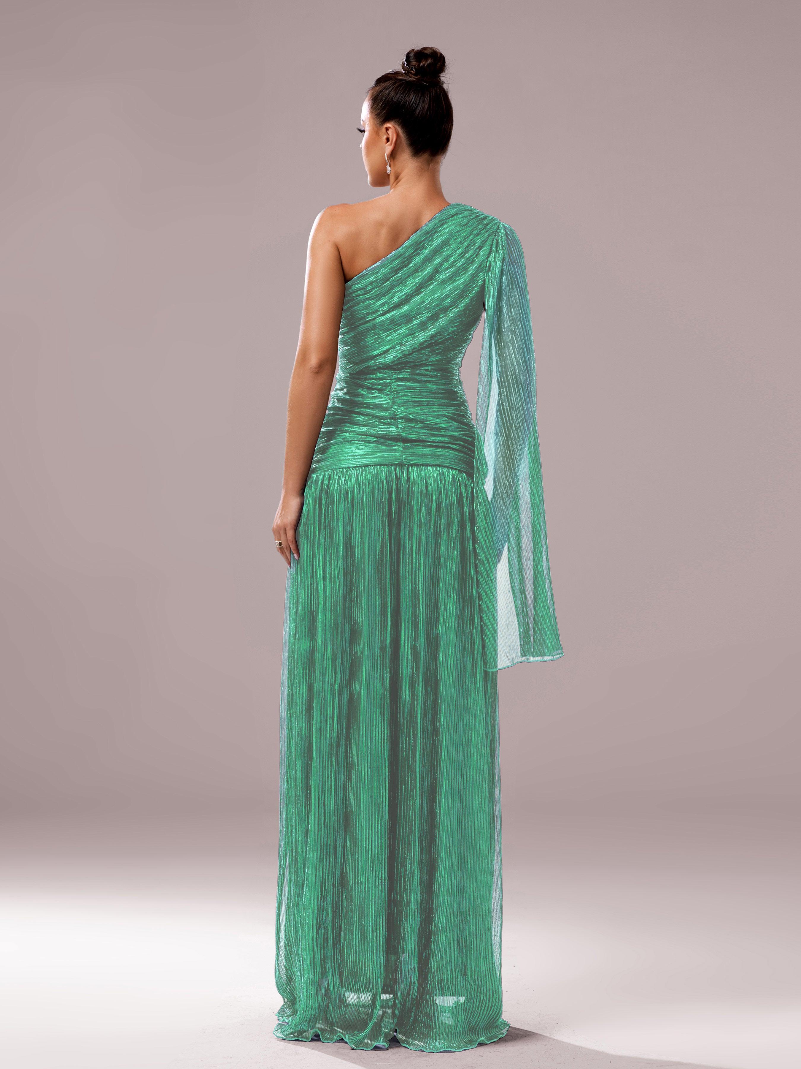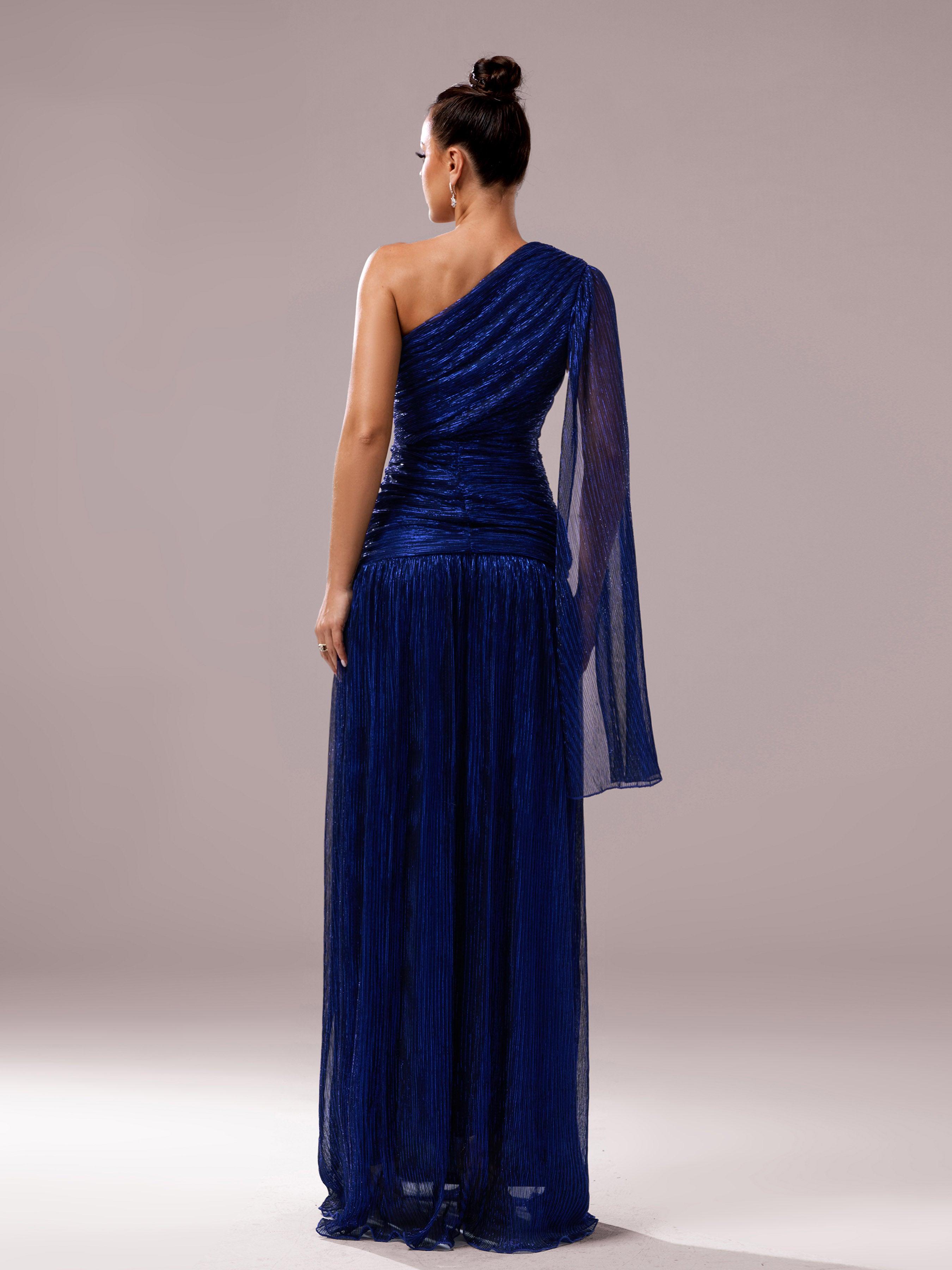 One Shoulder Mesh Pleated Prom Dress MCW1149