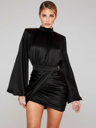 Stand Collar Ruched Ballon Sleeve Mini Dress MCW1200