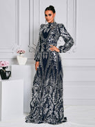 Get ready to sparkle in our Stand Collar Maxi Sequin Dress! This dress features a stand collar for a touch of sophistication, while the maxi length and sequin embellishments will have you shining all night long. Perfect for any special occasion, this dress will make you the star of the show!