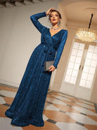 Long Sleeve Wrap A-line Prom Dress MCW1154