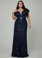 Blaues Abendkleid im Meerjungfrau-Stil mit herzförmigem Kragen und Pailletten in Übergröße PXL093