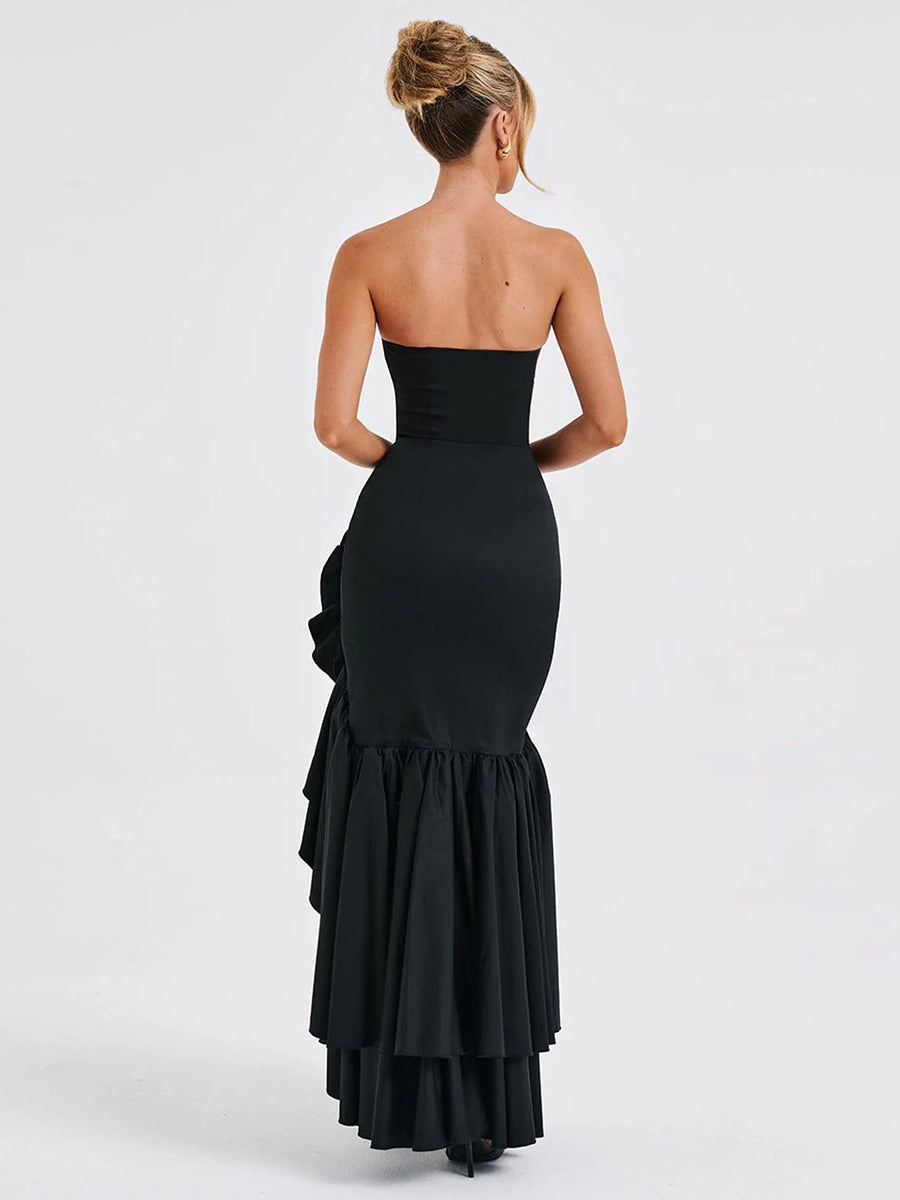 Corset Strapless Split Plain Maxi Dress GM90016 - MISS ORD