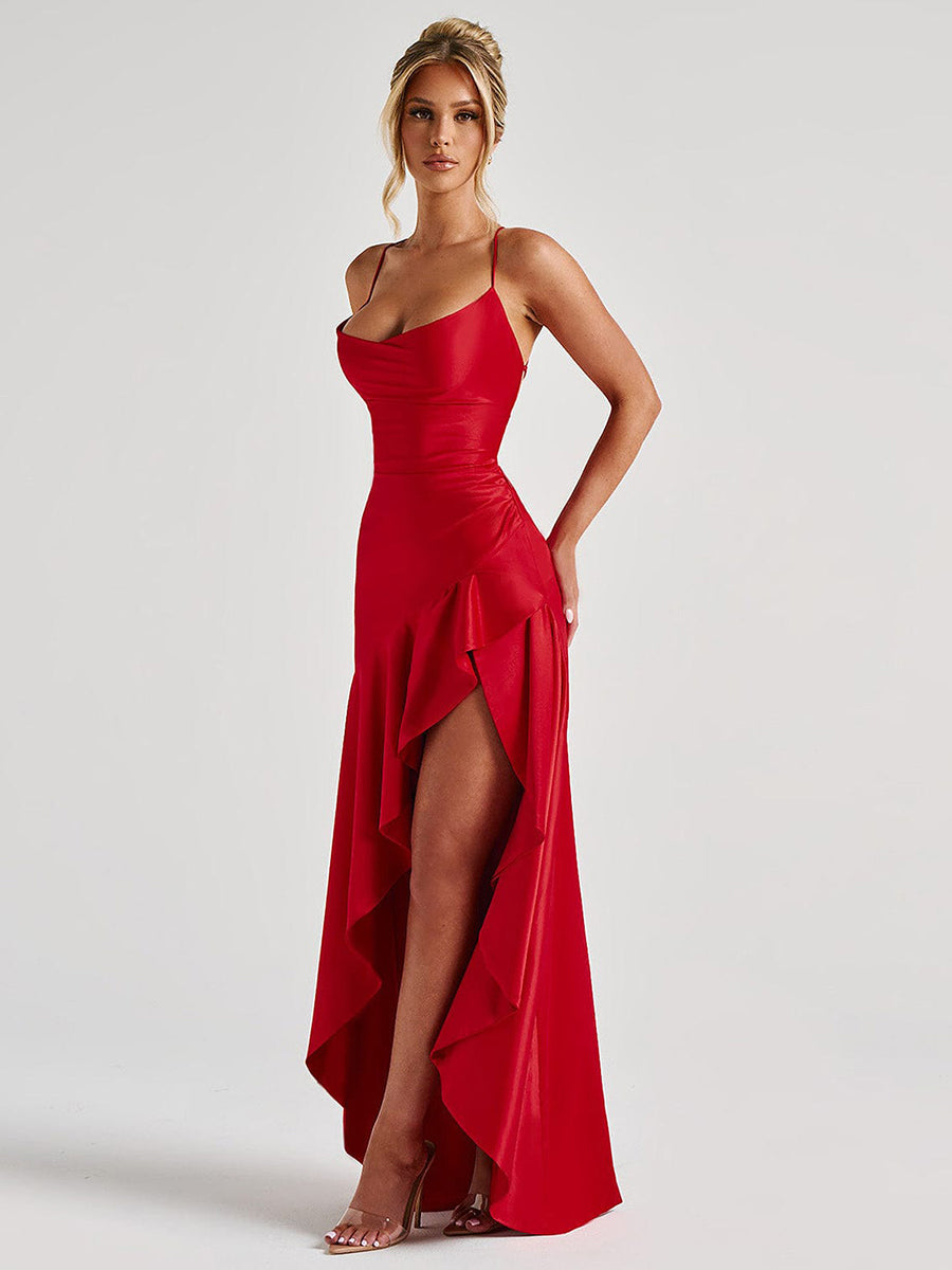 Spaghetti Lace Back Asymmetric Cocktail Dress XF05755