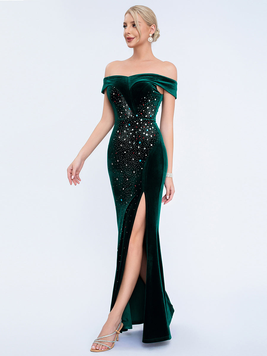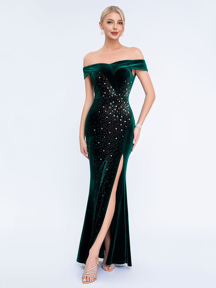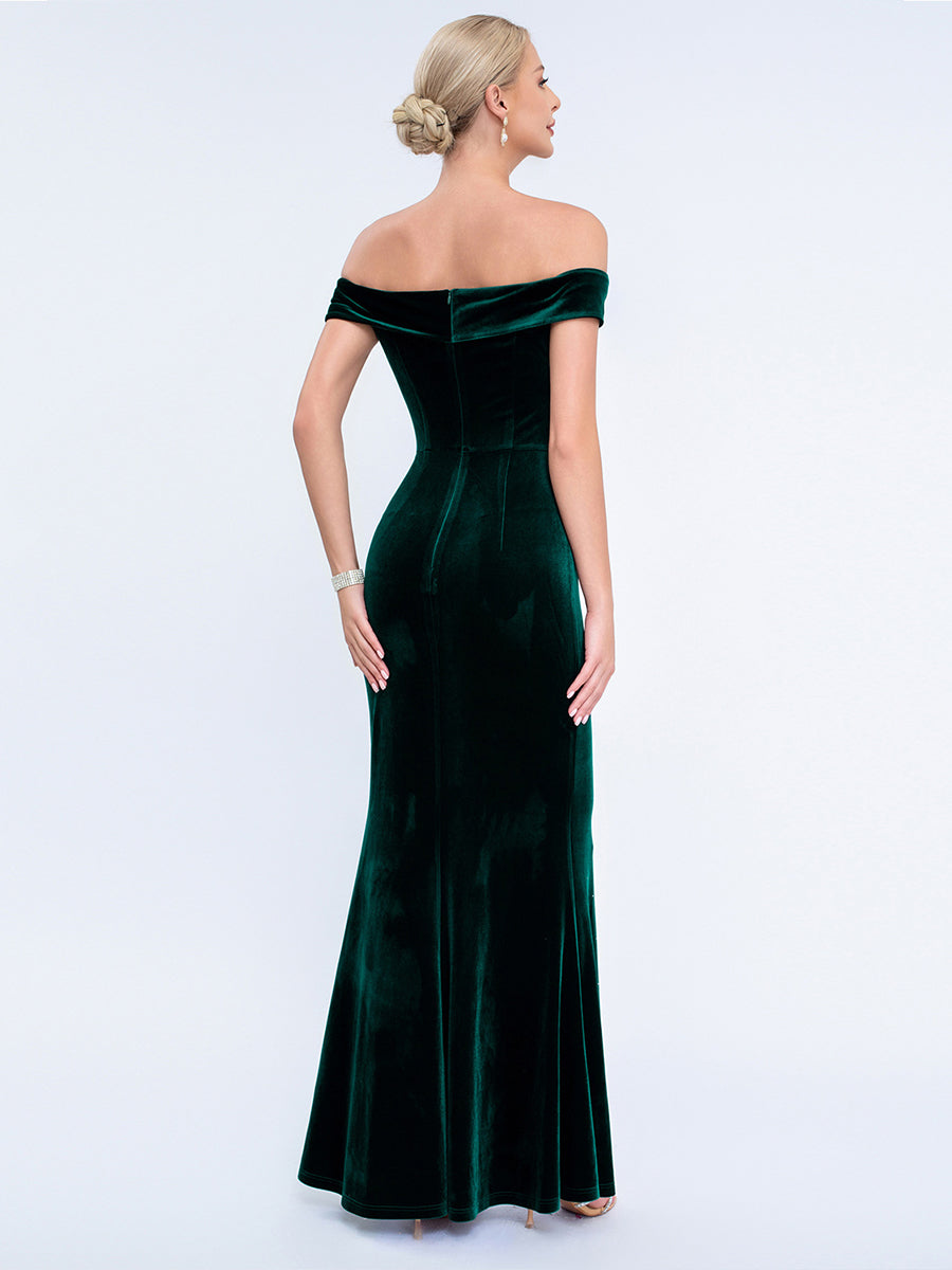 Green Velvet Off-Shoulder Regal Formal Dress XF251270