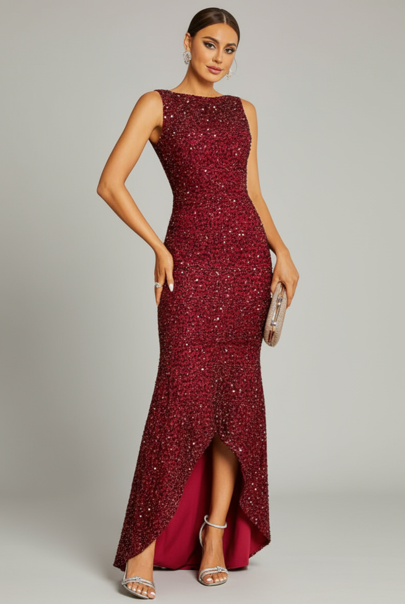 Einschultriges, drapiertes, seitliches Maxikleid mit Meerjungfrauensaum in Rot XH1930