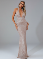 Halter Plung Neck Sexy Sequin Cocktail Dress XH1496