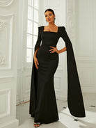 Formelles schwarzes Ballkleid mit quadratischem Ausschnitt und langen Ärmeln XJ878