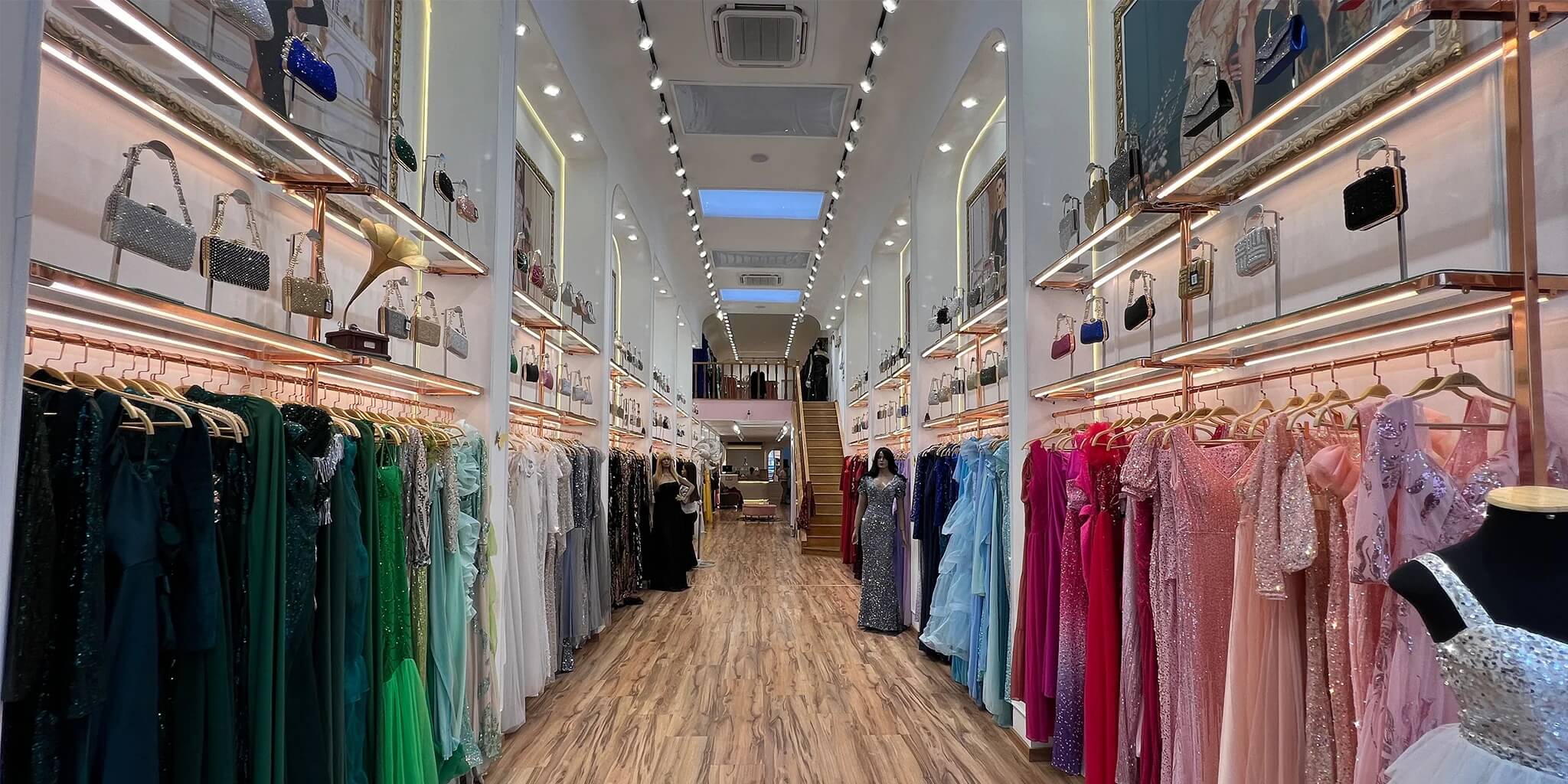 Kalte Schulter, Perlenkette, elegantes Pailletten-Abschlussballkleid M01081