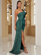 One-Shoulder-Abschlussballkleid mit Pailletteneinsatz und Schlitz am Oberschenkel XH2356