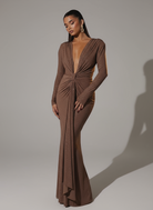 Get ready to plunge into your next formal event with this Long Sleeve Ruched Solid Prom Dress from MYC2022! The plunging neckline and ruched detailing add a touch of elegance to this fun and playful dress. Perfect for making a statement and standing out from the crowd.