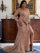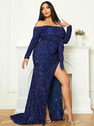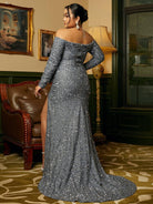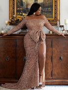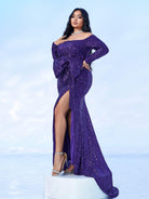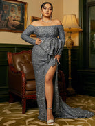 Dieses schlichte schulterfreie Wickelkleid in Maxilänge ist mit einer auffälligen Schleife verziert und verfügt über einen Schlitz am Oberschenkel und einen Reißverschluss für einen eleganten Abendlook.