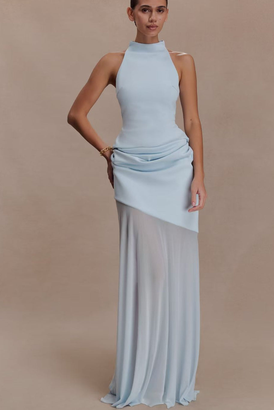 • Broad shoulders: V-neck or one-shoulder designs create a softer silhouette.