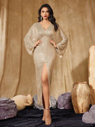 Gold Batsleeve Loose Split Prom Dress XF251223