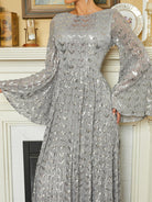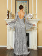 Bell Sleeve Backless Sequin Evening Dress RM20603