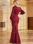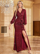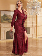 Long Sleeve Glitter Ruffled Prom Dress MCW1038