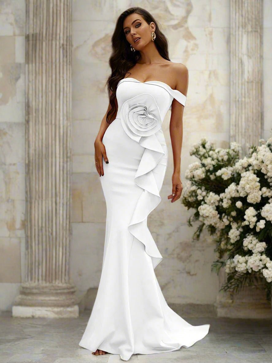 Sehen Sie umwerfend aus in diesem schulterfreien Abendkleid. Das rücken- und trägerlose Design mit einzigartigen dreidimensionalen Blumendetails sorgt für einen Hauch von Raffinesse. Dieses Kleid ist perfekt für einen eleganten Abend und hat eine satte rote oder braune Farbe.