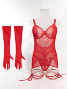 See-through Solid Rhinestone Glove Ties Three-Piece Set MSL065
