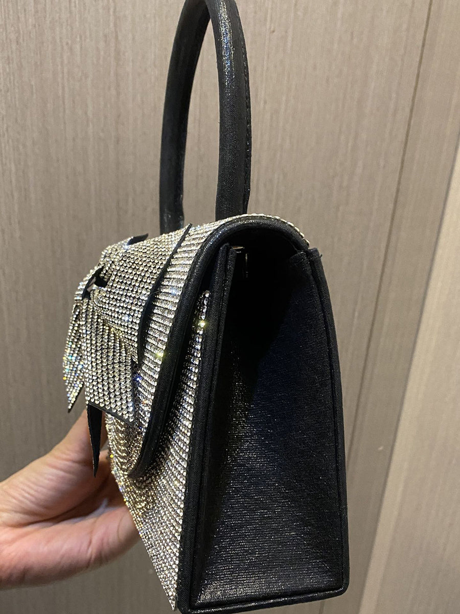 Crystal Bow Embellished Top Handle Clutch MNBF139