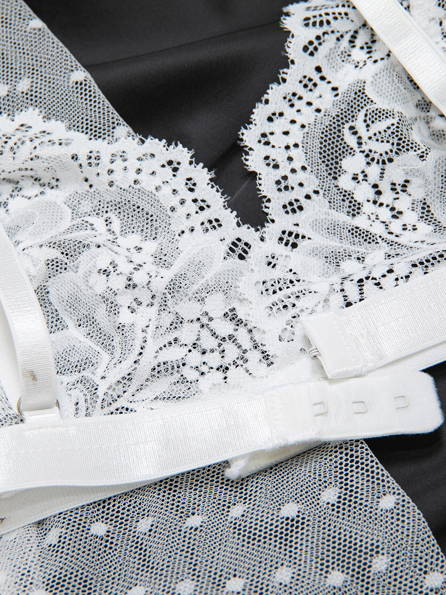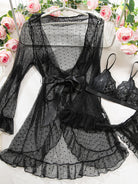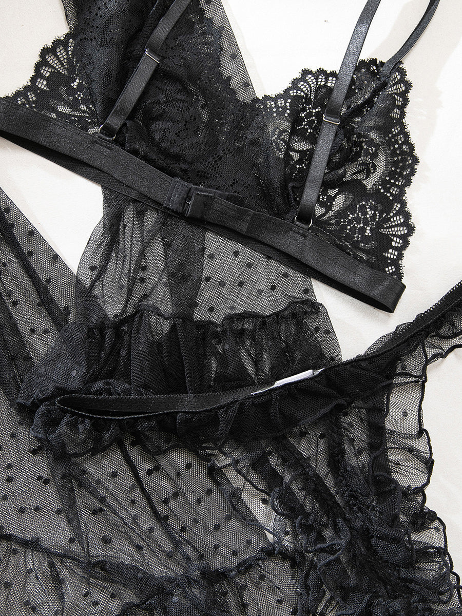 Polka Dot Mesh See-through Lace Sexy Lingerie Three-piece Set MSL102