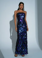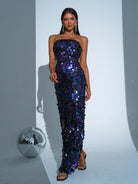 Tube Top Sequin Blue Maxi Dress RJ11580