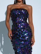 Get ready to shine in this sequin blue maxi dress! The tube top design will keep you cool and comfortable while the sequins add some playful sparkle. Perfect for any occasion where you want to add some extra glam (and maybe a little extra dance moves).