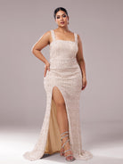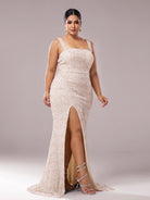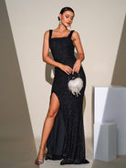 Effortlessly elegant, this sleeveless high split prom dress is designed to turn heads. The flowy silhouette and high split create a dramatic look, perfect for any formal occasion. The dress exudes confidence and sophistication, making you stand out from the crowd. Make a statement and feel like royalty in this stunning dress!
