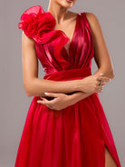 Red Floral Satin V-Neck A-line Evening Dress GZ60108