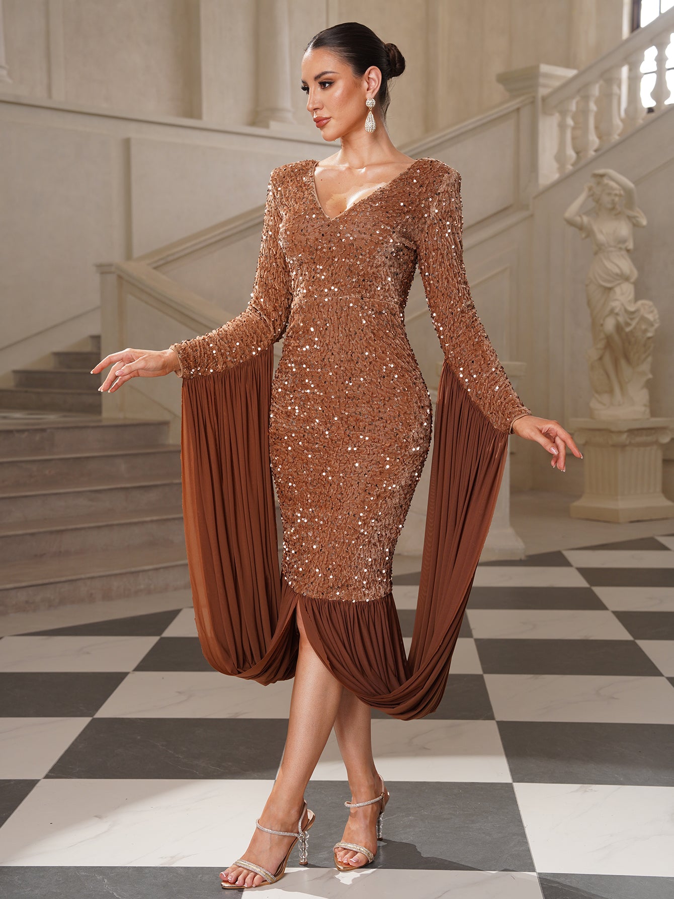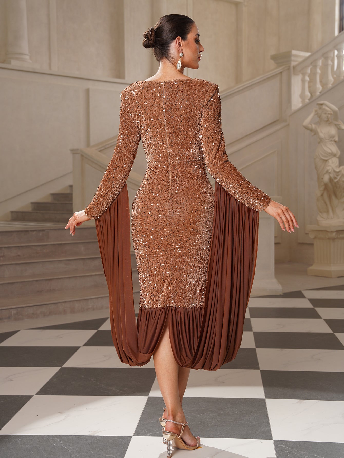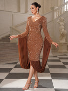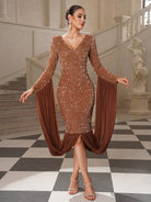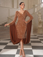 Clarissa Flowy Draped Sequin Cocktail Dress