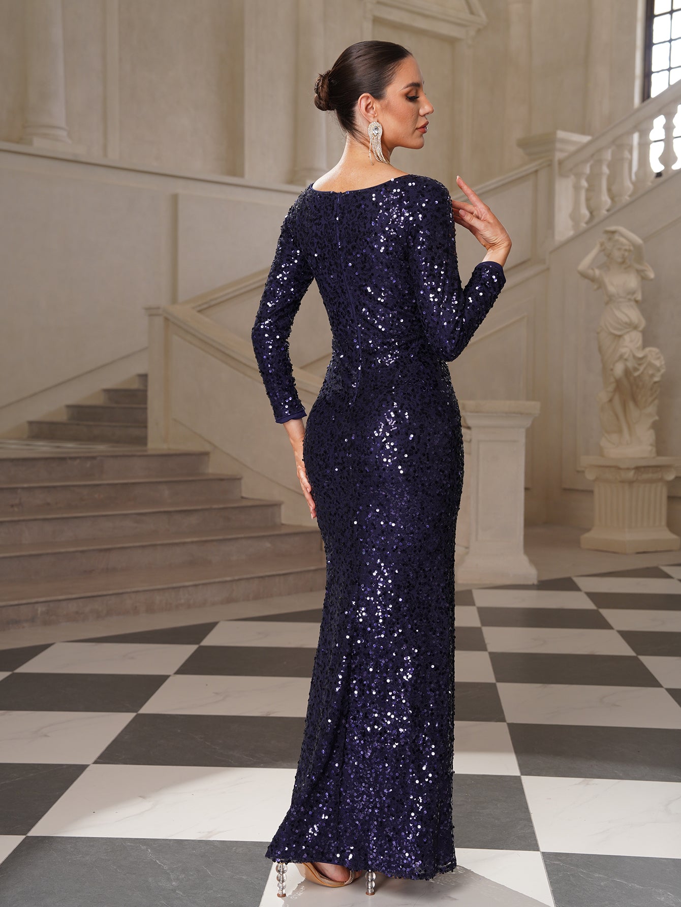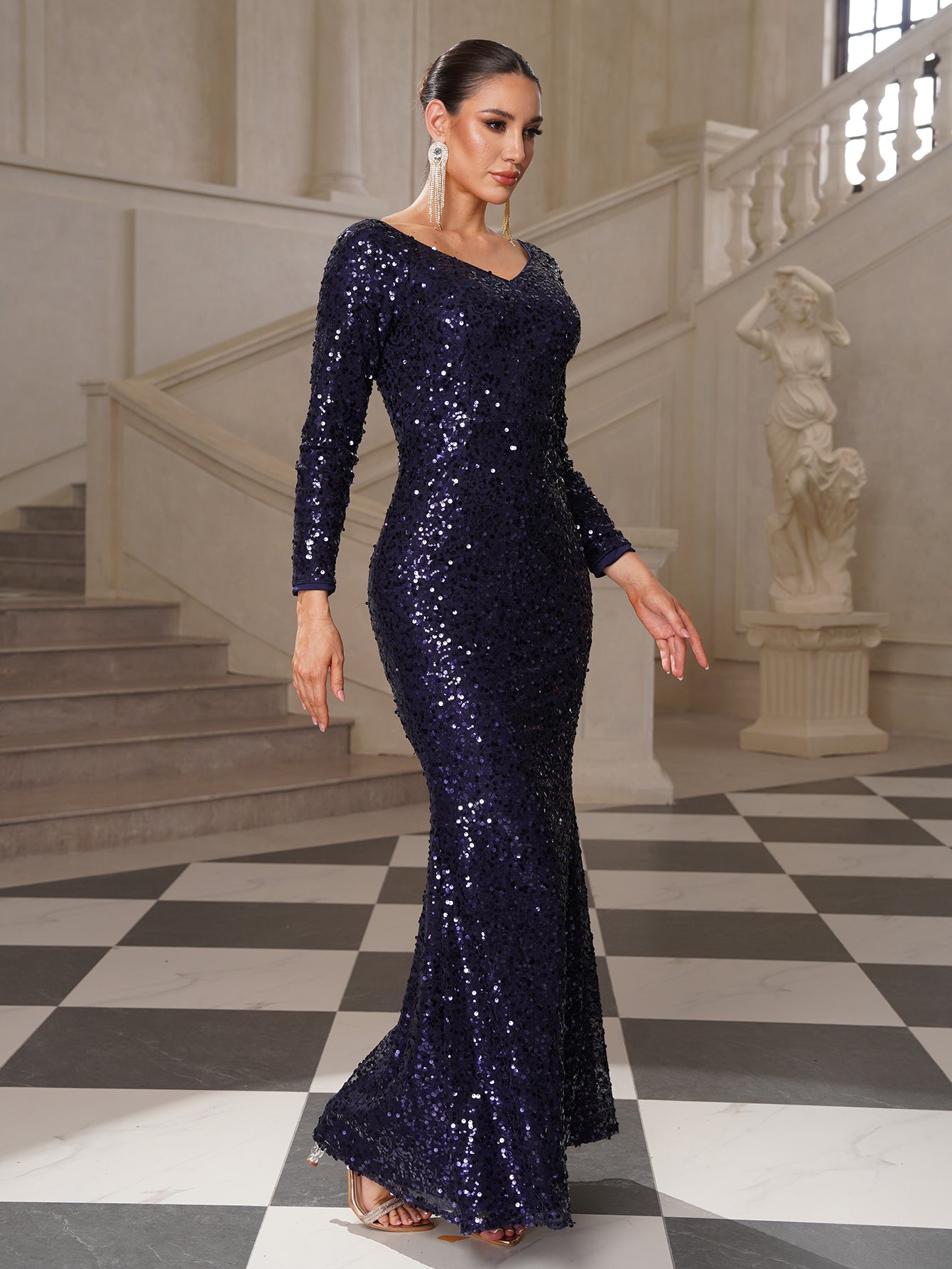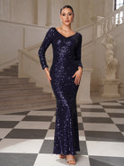 Trista Glam Navy Sequin Mermaid Evening Dress