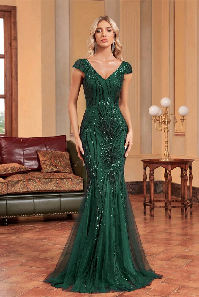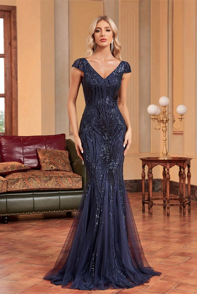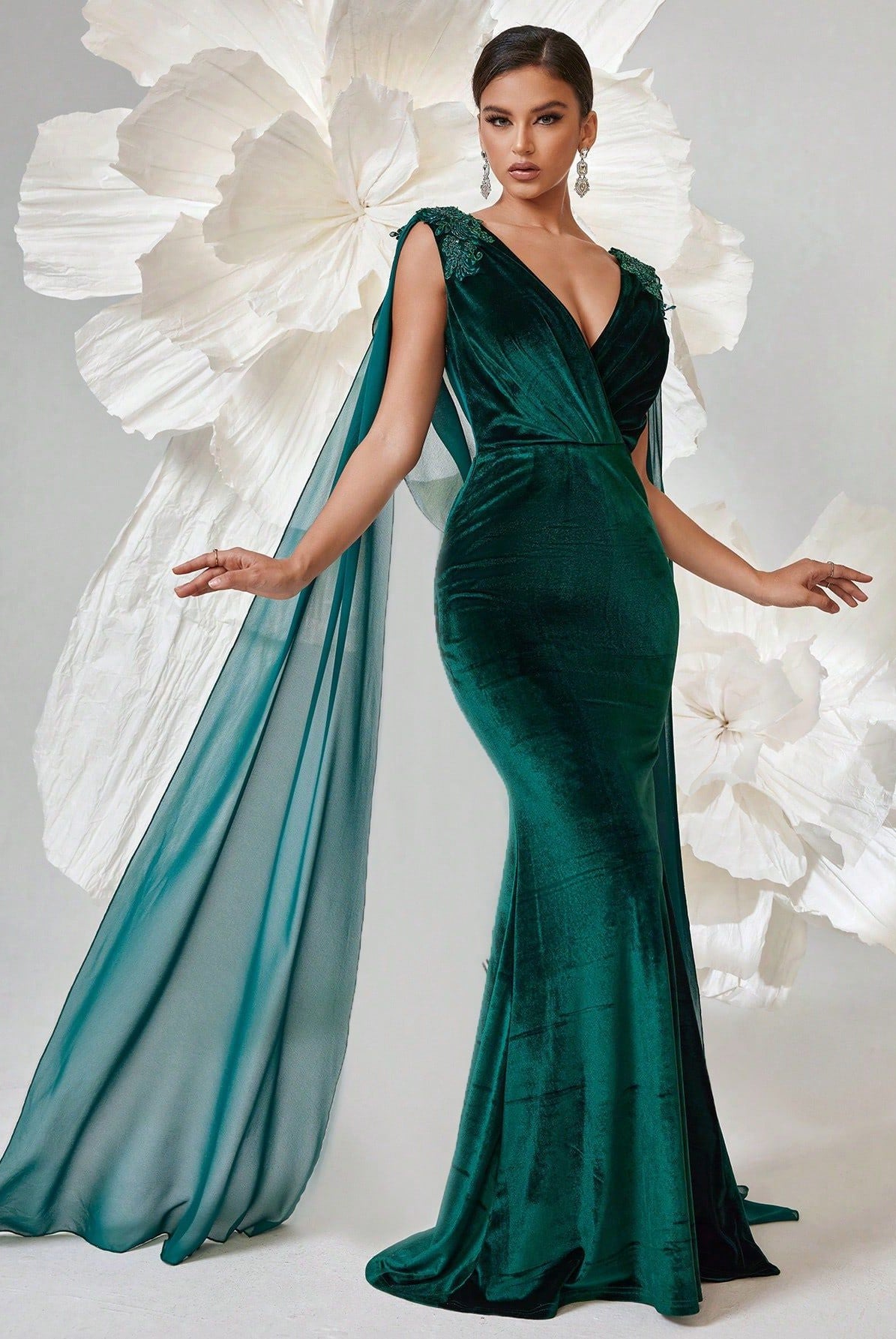 Luxury Sequin Mermaid Cape Evening Dress XF251229