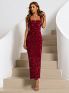 Wine Square Neck Sequin Cocktail Dress XJ468