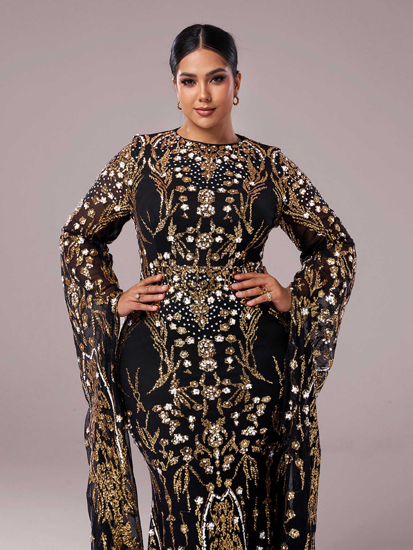 Plus Long Sleeve Mermaid Sequin Maxi Dress PMES00404